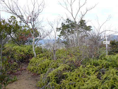 目の前には亀山の山頂があり、おいでおいでと呼んでいるような気もするが、素人の山歩きなので亀山への分岐を横に見て陶ヶ岳への道を取る。陶ヶ岳への道は藪道となっており、あまり人が通っていないようにも見受けられた。