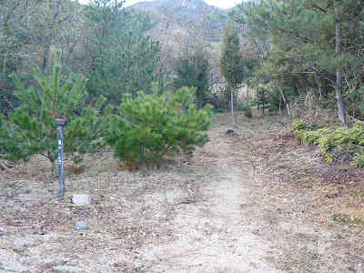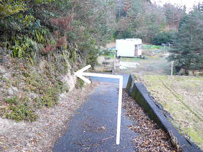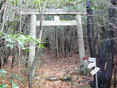 鳥居手前には標識が立ち、鳥居を潜れば陶ヶ岳へ、右へ向かえば名田島(82番霊光院へ)と示されている。また、鳥居の右手に鎮座するお地蔵様には8丁と刻まれていた。大鳥居をくぐり、道なりに進むと右手に大岩を過ごす。そのまま更に進めば9丁のお地蔵様を過ごし、陶ヶ岳観音堂跡地の広場に出た。
