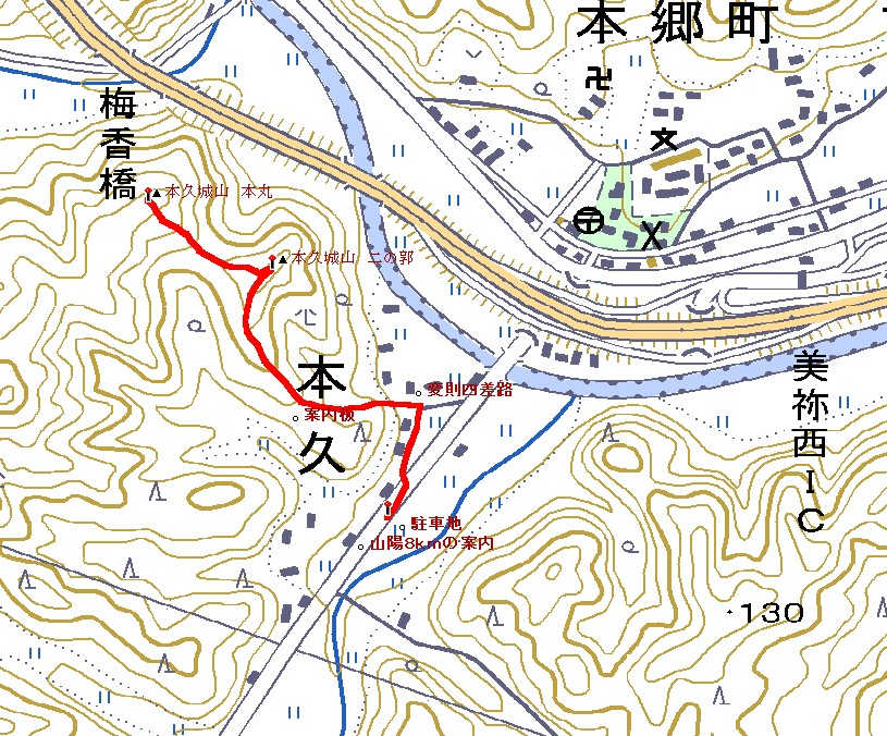 登山口周辺の地図はこちら 山口県美祢市 本久城山 登山口付近のMAP |
