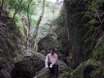 登山道に入ると最初から急な坂を登ることになり、道はゴロ石混じりとなっており、期待した以上の景観・景色で感激した。ここで沢登りコースと観音岩コースの分岐となったが当然沢登りコースを取る。更に急な坂を登ると沢があり、沢の中にはハヤがたくさんいた。こんな高い所に魚がいるものかと思いながらしばらく観察した。沢を抜けて行くと待望のゴルジュ帯に着いた。