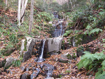 もうそろそろ雪のシーズン、もう高い山への山歩きは今シーズンこれが最後かもしれない。緩やかな坂道をゆっくりと進んで行くと久し振りに沢を渡り、その先では落ち葉を踏みしめて落葉の自然林の中、高度を上げて行く。と、左手に「水呑場」の標識が立っている。