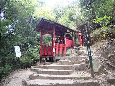 階段を登り金光稲荷神社本殿へ参拝、右上へ続く参道を辿る。参道途中には東照宮公の遺訓が掲示されている。朱の鳥居の下を登るが、真夏の登山なので熱中症予防も兼ねてスローペースで高度を上げる。