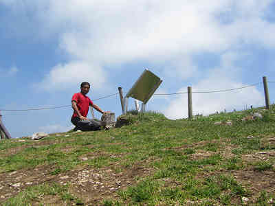 山頂で記念撮影 山頂に祀られた日本武尊の風景 伊吹山神は、英雄ヤマトタケルを退け、死に至らしめた「荒ぶる神」として「古事記」に登場している。ヤマトタケルノミコトは、古事記では「倭建命」、日本書紀では「日本武尊」と表記されている。