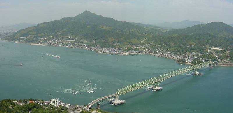 般若姫が大島の瀬戸に身を投じる元々の原因は豊後の国の在所の時期にあったと言うことが初めて判った。般若姫の霊を慰めるために般若姫社の左手には豊日命(三十一代用明天皇)が建立されたと伝えられる慰霊の塔が立っている。般若姫社に参拝し、社の後ろを見ると中電の巡視路が続いている。地図もガイドも持たずに出発したのでそのまま巡視路を進むと中電鉄塔の下に到着した。 その先山頂方面への道は踏み跡が続いているようだが、先程までの雨で露が残っているため薮への道は断念し車道に戻ることにした。再び般若姫社まで戻り車道を進む。車道の左右は温泉付別荘地となっているようで、大島大橋と瀬戸の渦潮が一望できる別荘地にはモダンな建物が点在している。別荘地を通り過ぎ、緩やかな舗装道をゆっくりと進んで行く。