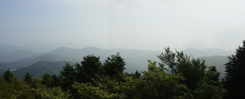 展望の岩からは北方面に莇ヶ岳と弟見山、南東方面には金峰山らしき山容を見ることが出来た。本日は少しガスが掛かっており、馬糞ヶ岳方面は真っ白になっているのが残念である。展望の岩にて地図を広げ、山の特定をしながら飲むコーヒーがとてもおいしい。