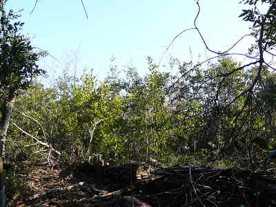 石ヶ山の山頂風景 山頂を出発するためipodのスイッチを入れようとしたらなんとipodが無くなっていた。ヤブの中を強引に歩いたため、スピーカーからipodが外れて落ちてしまったようだ。普通の山頂では無く、足下も見えないヤブ山なので、どこに落としたのか全く分からない。