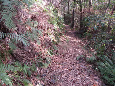 明確なる登山道を下りて行くと、シダなどが綺麗に刈られており、この道はとても整備されている事が分かった。左手に大石を見送り、自然林の中を快適に下りて行く。展望はないものの、とても歩きやすい道である。
