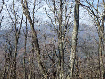 山頂周囲を落葉の樹林が覆っており、展望は樹林越しとなっている。樹間越しながら北西方向には平坦な十方山がそびえており、昔平坦な山頂に立ったことが懐かしい思い出として残っている。