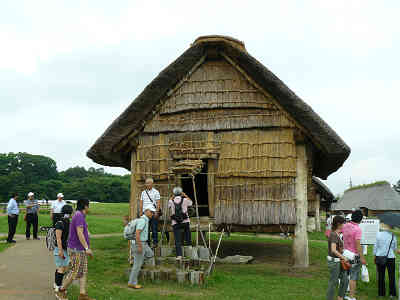 弘前城見学の次は青森市を目指して進む。たまたま出ていた三内丸山遺跡の案内に従い、縄文時代の遺跡を見学することにした。特別史跡三内丸山遺跡は、江戸時代から知られている有名な遺跡で、平成4年から始まった発掘調査では、縄文時代前期から中期(約5500年前から4000年前)の大規模な集落跡が見つかっている。