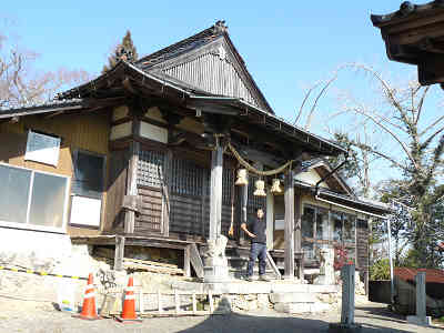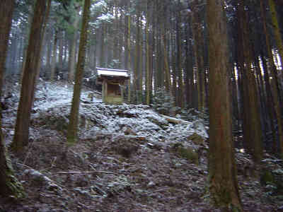 弥山社への参拝が終了、次は瓦谷地区で祀られている赤瀧神社に向かう。弥山堂から西方面に少し進むとすぐに赤瀧神社(弥山本宮)に到着、赤瀧神社でも沢山のお願いをする。この神社には木彫りの狛犬が座っており、とてもかわいい姿に感激してしまった。前回来た時には気づかなかったようだ。神社の前には前回ほどではないが雪が積もっており、なかなか良い風景だ。