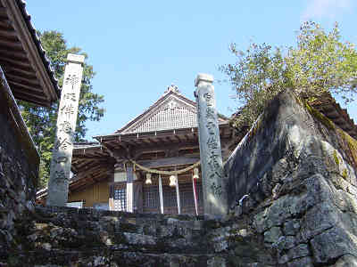 2004年 3月 7日 杭名コースの登山記を読む 岩国弥山・柏木山 阿品コース 登山口 →0:10→ 五丁 →0:10→ 九丁 →0:10→ 十一丁休憩所 →0:10→ 十五丁 →0:10→ 弥山社→赤瀧神社→日宛神社 →0:05→ 展望地 →0:05→ 柏木山分岐 →0:15→ 変則四差路 →0:20→ 柏木山 →0:10→ 変則四差路 →0:15→ 柏木山分岐 →0:10→ 日宛神社→赤瀧神社→弥山社 →0:18→ 十一丁休憩所 →0:17→ 登山口 全歩行時間 2時間45分 朝からよく晴れているので、前からの計画通り岩国の弥山・柏木山に向かう。以前杭名コースから弥山道の大鳥居をくぐって登ったので、今回は阿品地区より弥山道を通って弥山に向かう事にした。 国道2号を玖珂から岩国方面に向かい、新岩国への分岐を過ごした先の下多田交差点を美和方面に左折、県道59号岩国錦線に入る。途中道路の細くなる場所を通り抜けると正面に弥山が見えてくる。双眼鏡で山頂付近を眺めると弥山社と鐘突堂が見えており、早くおいでと呼んでいるようだ。
