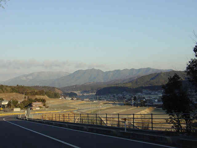 中国山地の展望、左は羅漢山 南方面には左手から岩国市街と瀬戸内海、高照寺山から柳井氷室岳、玖珂蓮華山へと続く稜線も美しい。あまりに展望が美しいので展望台の上にて昼食を取り、地図を眺めながら楽しい時間を過ごす。その間にも乗用車で登ってきた人々が神社に参拝を続けており、この三社はとてもにぎやかな神社であることが分かった。