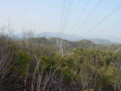 東方面に展望が開けていないかを確かめるために東に向かって降りて行くと四差路があり、更に先に行くと中電鉄塔が立つ広場になっていた。この広場から東南方面には米軍岩国基地と岩国市街が一望となっており、北には大竹の町並みと傘山方面が開けている。