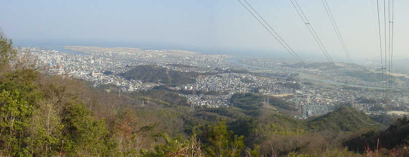 大竹方面の展望 山頂で記念写真を撮り、ゆっくりと降りる。椎尾八幡宮に降りる前に山を降りている人に出会った。水道局の上から岩国市街を展望していたらしい。椎尾八幡宮に登山の無事を報告し登山を終了した。