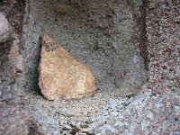 クマザサの中を下りて行く しばらく我慢して下りていると鉄工所の前の道に着いた。鉄工所の屋根の下で雨宿りをしていたが、雨の勢いが一向に収まらないので車まで戻ることにした。ゆっくりと雨に打たれながら舗装道を車まで戻り、登山を終了した。 岩屋山の岩を観察すると、奥の院はライオンの鼻の部分であり、岩の中心部であることが判った。よくぞあんな所に行ったものだと感心しつつ岩屋山を後にした。雨に打たれてずぶ濡れになり、寒くなった体を温めるため、この先北の方向にある石船温泉に向かって出発した。