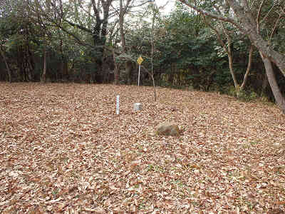 さて、今回は一周回りの散策をするために、「中将峰を経て金剛峰」の案内に従い分岐を左に採る。コンクリート舗装の坂道を進むと最初に出てくる案内が標高211.9mの中将峰。この先ほとんど平坦な道を進み、右にベンチの置かれた休憩所を過ごす。するとコンクリート舗装の道の上には落ち葉が大量に堆積しており、さくさくと気持ちの良い音を立てながら坂を登る。