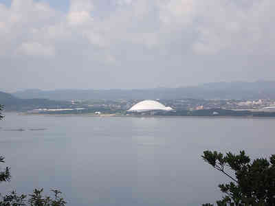 駐車スペースが70m先にあるとあったので進むと、駐車場までの道がでこぼこになっており、なかなか苦労しそうな道だった。駐車場から一つ上の段へ登るとベンチの置かれた展望地になっており、対岸には白いきららドーム、その奧には霜降山がそびえている。