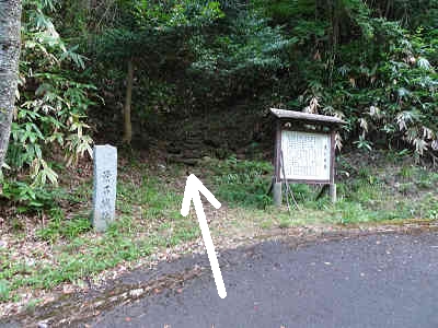 案内に従い分岐を右折すれば終点が登山口駐車場で、登山口は駐車場からわずかに下ったところにある。駐車場を出発し鋪装道をわずかに下れば景石城山の石柱と城山の案内板の置かれた登山口に着き、すぐに山道に入る。