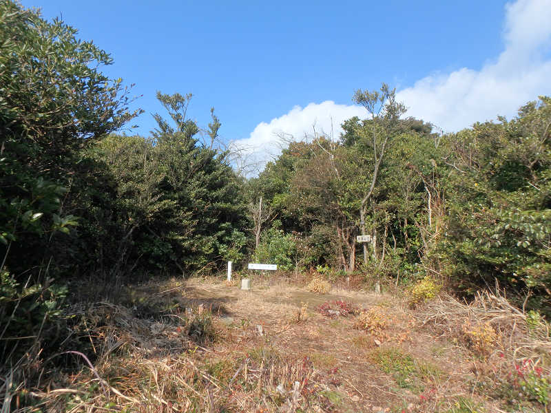 そのまま道なりに縦走路を進み、巨木を過ごす。やがて周囲が広くなれば樹林の中に二等三角点の置かれた高壺山の山頂へ着く。山頂からは南へ赤テープが続いており、この案内に従い進むと旧軍施設の遺構を見ることができる。