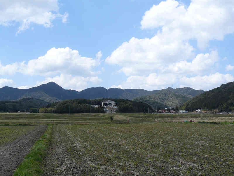 2012年3月25日 民家横のイノシシゲート →0:15→ 巡視路入口鉄製の橋 →0:10→ bQ8鉄塔 →0:35→ 地積図根三角点 →0:08→ 笠ヶ岳山頂 →0:06→ 笠ヶ岳三角点 →0:08→ 笠ヶ岳山頂 →0:38→ 勝陣山南峰 →0:12→ 346mピーク →0:35→ 林道出合 →0:13→ イノシシゲート 全歩行時間 3時間 0分 山口県下関市の山へ、今回は菊川町日新地区を登山口として笠ヶ岳へ登り、その後北東にそびえる勝陣山の山頂を踏み、登山口へ周回するコースを採る。 登山の起点を菊川町の「道の駅 きくがわ」とすれば、道の駅から国道491号を西へ進む。正面には六万坊山がそびえ、左の山と重なった姿は、お釈迦様の寝姿に見える。