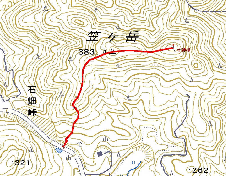 笠ヶ岳への石畑峠コースが確認できたので、吉見竜王山から鬼ヶ城山、狩音山を経由して石畑峠へ下り、更に笠ヶ岳から勝陣山への縦走もできることが分かった。なお、山頂についての解説は、春の笠ヶ岳・勝陣山の縦走を参考にされたい。 さて、山頂を出発、三角点を経由し、展望地にて眼下に広がる展望を確認した後、下山を開始する。快適な下山道なので、何の障害もなく、最初に苦労したヤブについても、大きく迂回することにより、安心安全に下山、無事登山口の石畑峠へ到着した。 次は石畑峠から狩音山、鬼ヶ城、竜王山の山頂を踏み、安岡へ抜ける完全縦走を計画したいと思っている。ただし、私は決して健脚ではない。いわゆる一般的な登山者である私に、この縦走は実現できるものだろうか?。