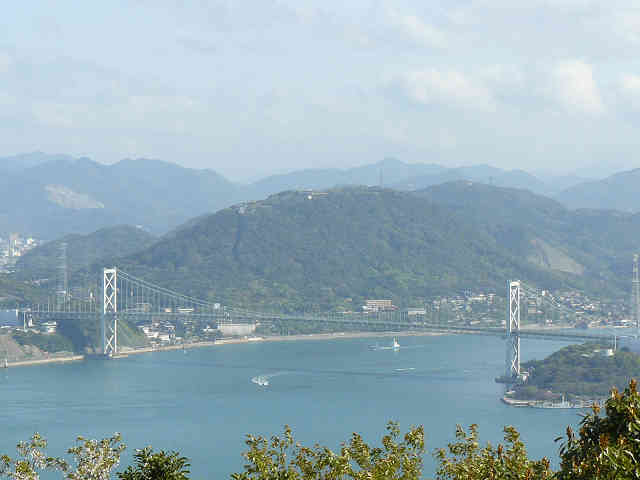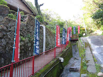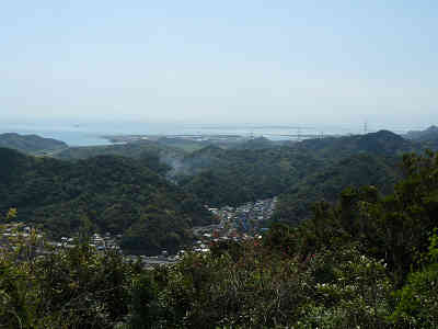 車道を少し進んで背後を振り返ると関門海峡の展望が広がっていた。本日初めての展望は素晴らしく、これから沢山の素晴らしい展望に出会える予感にワクワクしてきた。しばらく車道歩きが続くのでゆっくり歩いていると石鎚神社・不動明王院を過ごし、再び関門海峡の展望を眺めると、展望地の先で上清滝公園の広場を右に過ごす。