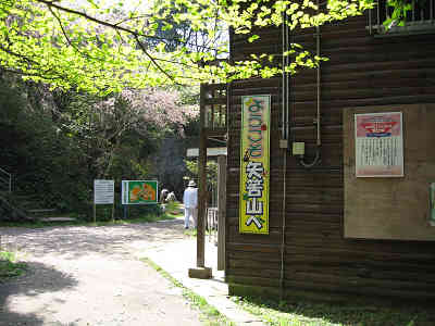 ゆっくりと周囲のお花見を楽しんだ後矢筈山キャンプ場を出発、未舗装道を下りていると風師山から縦走してきた20人のにぎやかな団体とすれ違う。未舗装道を道なりに下りて行き、一望平を通過、自然林の下を快適に下りて行くとキャンプ場を出発して15分で風師山へ1kmの標識の立つ分岐に着く。この分岐を矢筈山への登山時に利用すると矢筈山への近道となる。
