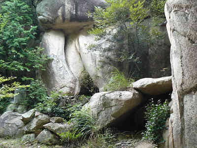 皇の墓から引き返し、今度は岩切観音へ向かう。大きな岩が立ちはだかるように聳え、岩の中に仏像が刻まれていた。岩切観音を眺めた後、今度は鬼の差上げ岩へ向かう。