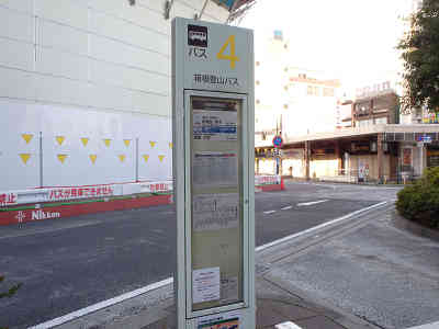 バス乗り場から箱根登山バスへ乗り込む JR小田原駅前のバス乗り場へ行き、4番乗り場で「桃源台」行きの箱根登山バスに乗り込む。始発の6時5分のバスに乗り、仙石バス停へ着いたら6時50分になっていた。道なりに国道1号を西へ300m進むと、右に金時山登山口の案内を見つける。 歴史ある石碑には、山頂まで20丁と刻まれており、「金時山ハ坂田金時ガ幼児・・・」と案内も刻まれている。このコースは、金時神社を経由するより、少し坂の傾斜が緩いそうだが、坂田金時公の祀られた金時神社への参拝をしたいので、そのまま国道を西へ向かう。