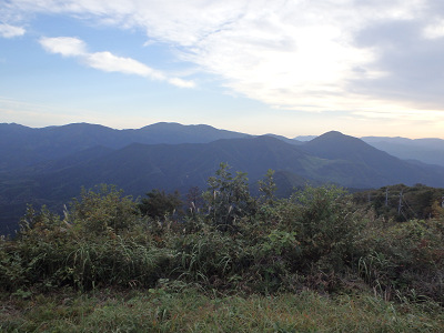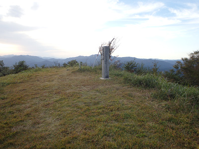 やがてカーブを回ったところで目指す山頂のアンテナが顔を出した。ただし、まだまだ山頂までは距離がある。更に高度を上げて行けば、周囲に展望が開け、これまでの苦労が報われてくる。頭上に電柱が見えてくれば、山頂までは間近と思っていたら、なかなか山頂は遠い。