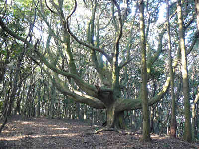 前方に沢山の手を大きく延ばしたような木が見えてきた。何かいわれのありそうな木だと思いながら321mピークへ近づくと、「川棚のたこおどり」と案内されている。確かに沢山の手を広げて踊っているようにも見える。最初からのどかな風景に出会えたことがとても嬉しい。