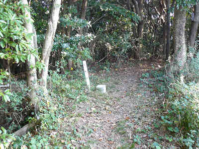 2004年3月20日の竜王山吉見コースの登山記を見る 2012年10月21日 石畑峠 →0:30→ 正月ヶ峰 →0:25→ 白滝乃頭 →0:45→ 狩音山 →0:20→ 石印寺分岐 →0:25→ 鬼ヶ城 →0:40→ 広瀬コブ →0:20→ 汐見岩 →0:15→ 桜ヶ谷 →0:20→ 吉見峠 →1:10→ 竜王山 →0:20→ 鋤先山 →1:00→ シタキ場山 →0:30→ 影山 →0:25→ 林道出会い →0:15→ 済生会下関病院前 →0:30→ JR安岡駅・・・・・JR川棚温泉駅 →1:20→ 石畑峠 全歩行時間 9時間30分(休憩時間を除く) いよいよ今年最後の大縦走、北浦スカイラインへ向かう。先週登った笠ヶ岳の麓、石畑峠を登山口とし、狩音山・鬼ヶ城山へ登り、一旦吉見峠へ下る。その後竜王山へ登り、鋤先山の山頂を踏み、最後は安岡の済生会下関病院へ下る。この山域の完全縦走の北浦スカイラインは、昨年より続けている下関の山歩きの中でも最大の課題であった。 先週の笠ヶ岳石畑峠コース登山は、笠ヶ岳の先へ続く勝陣山への縦走を確認するための作業である。正統派なら、安岡の済生会下関病院を起点とし、石畑峠へ下り、笠ヶ岳・勝陣山を縦走して川棚温泉へ下る縦走が一番魅力ある計画だが、これは夏に実施しないと、時間切れになる可能性が大きい。よって今回は、先に挙げた石畑峠から安岡の済生会下関病院までの縦走を実施する。 登山口は石畑峠、登山の起点をJR川棚温泉駅とすれば、駅前から県道40号を道なりに東へ進む。すぐに進路は南東方面へ変わり、川棚温泉前の交差点を右折する。そのまま県道40号を南下し、次の信号のある交差点を左折、更に県道40号を道なりに進む。途中左側に響灘・厚島展望公園を過ごせば、やがて石畑峠へ到着、進行方向右側に鬼ヶ城山への登山口が現れる。なお、JR川棚温泉駅からこの石畑峠までの歩行時間は1時間20分程度である。