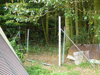 金毘羅山へ向かって分岐を直進すると、先ほど先行していた軽トラックの方は、ここで草刈り作業をされていた。とても歩きやすく刈られた平原を直進、農家の方に通行の許可を頂き、この先の獣除けネットを開けて通過する方法を教えて頂いた。そのまま草原を直進し、獣除けネットを締めてある紐をほどいて外に出る。なお、外に出たら、獣除けネットを閉めるのは言うまでもない。