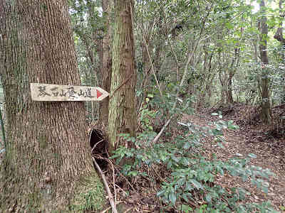 更に進むと左右の分岐へ着く。右道は四季の森コースや愛宕社参拝コースへ続く白潟林道入口で、左が今回とる白潟コースである。分岐にはこのコースについて、琴石山登山地道、道幅狭く急登あり、ミニアルプスの感あり、山頂まで約1時間と案内されている。