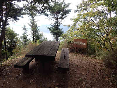 下山は修験ルートをとる。元来た道を少し三ヶ嶽林道方面へ引き返すと、左に修験ルートが分岐している。修験ルートの案内に従い細い道に入る。周囲に紅葉の始まりが見受けられ、これから最高の登山シーズンが始まる。