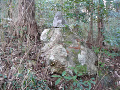 右の岩上には石仏のような石を眺める。霊山の弘法山へ向かうので、いろいろなものが神聖なものに見えてくるから不思議だ。やがて直進方向と右への分岐へ到着、まずは直進して弘法大師の石祠へ参拝する。