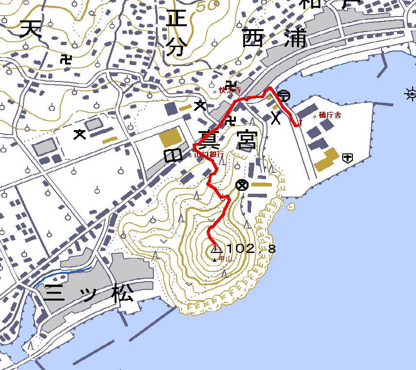 登山口周辺の地図はこちら 山口県周防大島町 甲山 登山口付近のMAP |