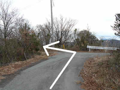 南に向かう道に下りて行き、砂利の敷き詰められた駐車場を過ごすと舗装道となり、更に下りて行くと分岐には展望広場まで200m、高照寺山まで400mの標識が立っている。