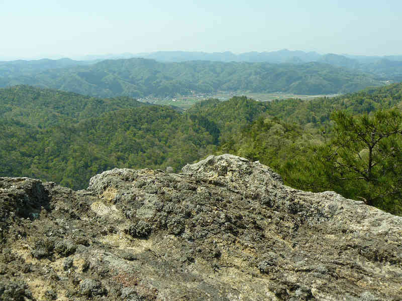 龍岩から北の展望 本日は少々霞気味だが、それでも美しい風景に変わりはない。しばらく眼下に広がる展望を眺めた後、今度は南の大岩上に立ってみる。この岩からは先ほどの岩から眺める事のできなかった南半分の展望が広がっている。従って南北の岩に立つ事により、ほぼ周囲360度の展望を得る事ができそうだ。
