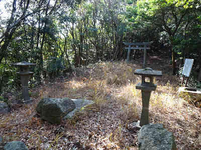 神社右側から続く道に入るとすぐに3号古墳に出会う。この上には「奉祝御大典之碑」の石碑が立っていた。古墳を見学後、神社まで引き返し鳥居を潜り石段を下る。この先に建つ和立海神社の石鳥居をくぐり、駐車地のJA山口県ふれあい西浦支所まで引き返した。黒山は低い山だが見どころの多い山だった。