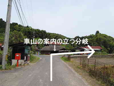 やがて西赤江町を過ぎ、更に南へ向かうと左にローソンの建つ田頼交差点が見えてくる。車山の長谷登山口は、この交差点を右折し、約100m先の分岐を左折(この角には地蔵堂が建っている)。西へコンクリート舗装の坂道を進み、最奥の民家前に着けば、この場所が長谷登山口であり、民家横には登山口の案内が置かれている。ただし、我々が今回目指しているのは、もう少し先の岩舟登山口である。