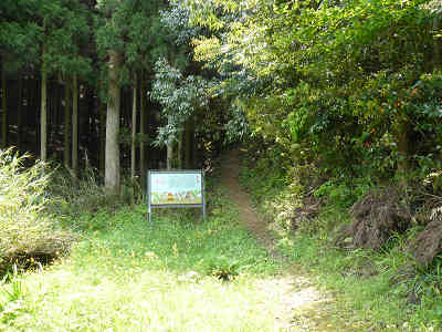 沼を右に見ながら進むとすぐに民家の前に着き、入口には「車山山頂0.6km」の案内が立っている。この場所が車山岩舟コースの登山口である。登山道に入り少し進むと足下に清水の湧き出す場所があり、ここにはコップが置かれていた。少し先には車山烽の案内が置かれており、案内によれば、車山は暑垣烽と推定されているそうだ。