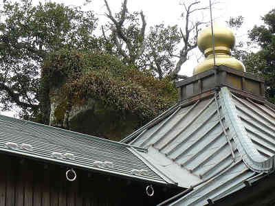 山門より石段を登り修禅寺へ参拝。本堂に参拝後、祖師堂より周囲に広がる展望を眺める。本日は少々霞気味ではあるが、遠く下関方面を眺めることができた。本堂の擬宝珠の左にそびえる巨岩がとても印象的である。これは本堂の横から眺める観音岩の上部の岩と思われる。