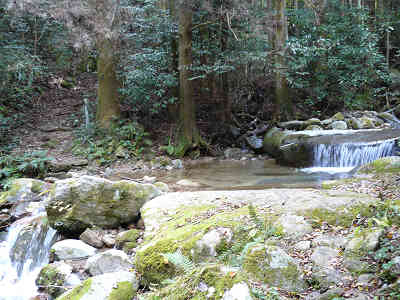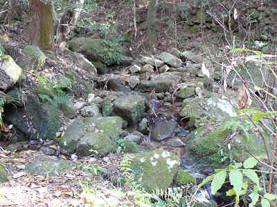 やがて岩の目立つ場所を過ごすと、左に石組みが残っている。この付近は水が豊富なので、昔は多くの人が生活していたのだろう。眼下に清流、頭上に紅葉を眺めながら沢渡りを繰り返す。この付近は夏場でも清涼感あふれる場所だろう。