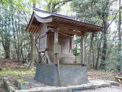 高野寺では祭りの準備中 高野寺を出発。北方向の林道に入ると、左に権現堂の案内があり、鳥居も建っている。まずは権現堂に参拝するため石段を登る。すぐに鏡向大権現に参拝、たくさんのお願いをする。権現様の奥へ続く道を進むと、少し坂を下り、元の林道に戻る。