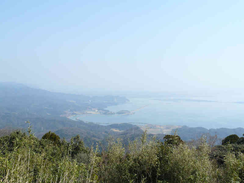 墨絵のような美しい展望を眺めながら小休止、やはり展望は元気の源である。横に立つ案内には澄水山へ2.3km、少しずつ距離が縮んでいる。右にレーダードームが見えてくればもう三坂山は近い。この先の三叉路付近から東を眺めると枕木山と大根島が一望、素晴らしい景色が広がっている。