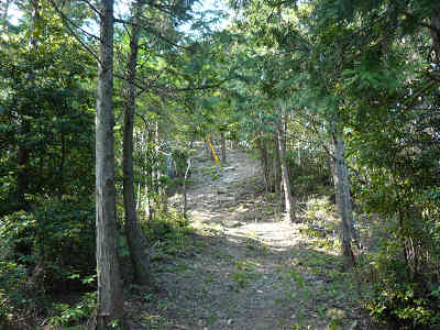 すぐに車道終点となり、ようやく登山道に出会う。この先からは擬木の階段整備された道を少し進み、尾根道へ着く。ここで後城へ向かう踏み跡を捜したが、はっきりした道は続いていないようだった。
