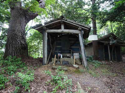 明確な登山道を辿っていると左に小さな小屋らしきものが見えてきた、この中には游界上人の墓が置かれており、丸瀬山霊場(游界上人の墓)の説明には次のように案内されていた。「多宝寺四代住職、游界上人即身成仏・入定の地。1672年(寛文12)11月14日夜、上人の生誕地の隠岐島をのぞむ位置に建立されている。願い事祈願に霊験あらたかなりと、町内外より参詣者が多い」。