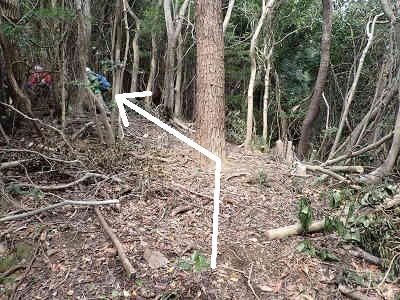 みかん園のためのモノレールが残っているが、周囲にみかん園はなく荒れており、当然最近モノレールが使われた形跡も無かった。やがて左に作業小屋、進行方向に作業小屋を見て、前方の作業小屋の手前から左上へ続く道を登る。