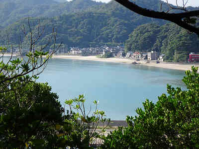 駐車場から西へ進み樹林の中に入ると踏み跡は左に続いていた。この先からは補助のロープが沢山渡されているが、ロープを使っても足下が滑りやすい。ロープを補助に慎重に高度を上げていると、途中では樹間越しに羽尾海岸を眺めることができた。